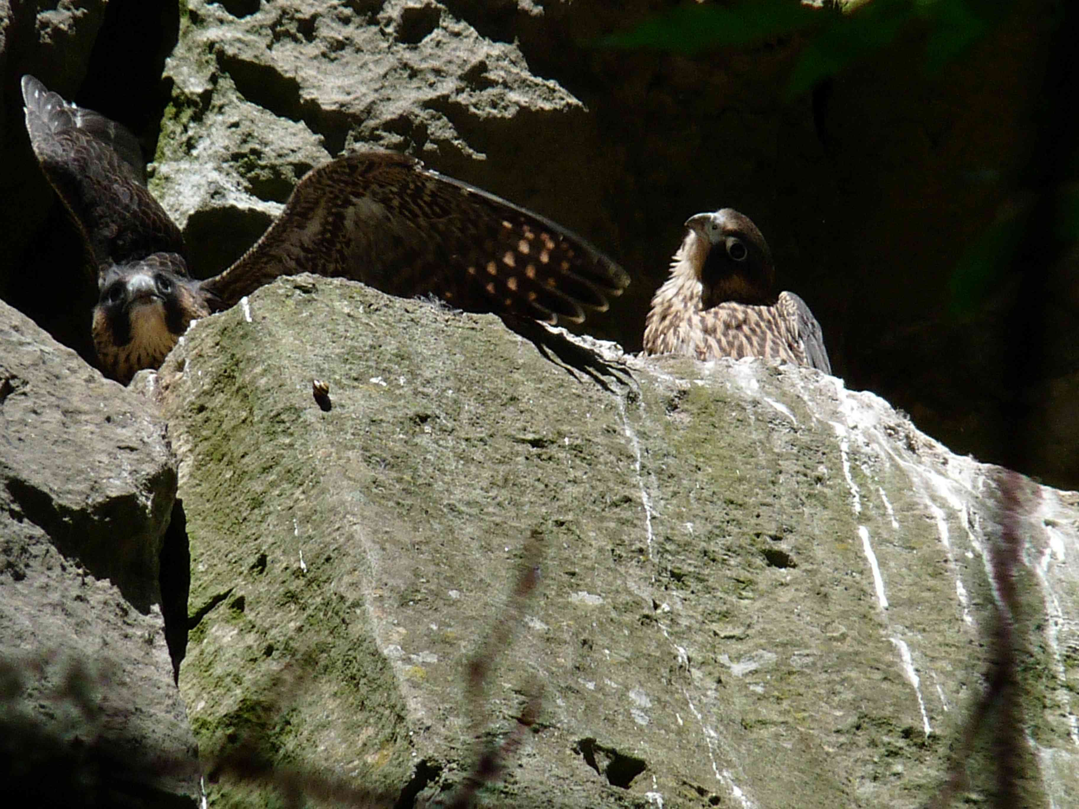 Warum ist das so? Werden die Falken vom Uhu gestört, plündern Waschbären das Nest oder sind es Wanderer und Kletterer, die sich nicht an die Absperrungen halten?